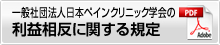 2010年7月2日に制定されました「一般社団法人日本ペインクリニック学会の利益相反に関する規定」に従い、学術集会での発表内容に利益相反がある場合に自己申告書を提出することが、また、学術集会での演題発表の際に、利益相反を開示することが必要になりました。